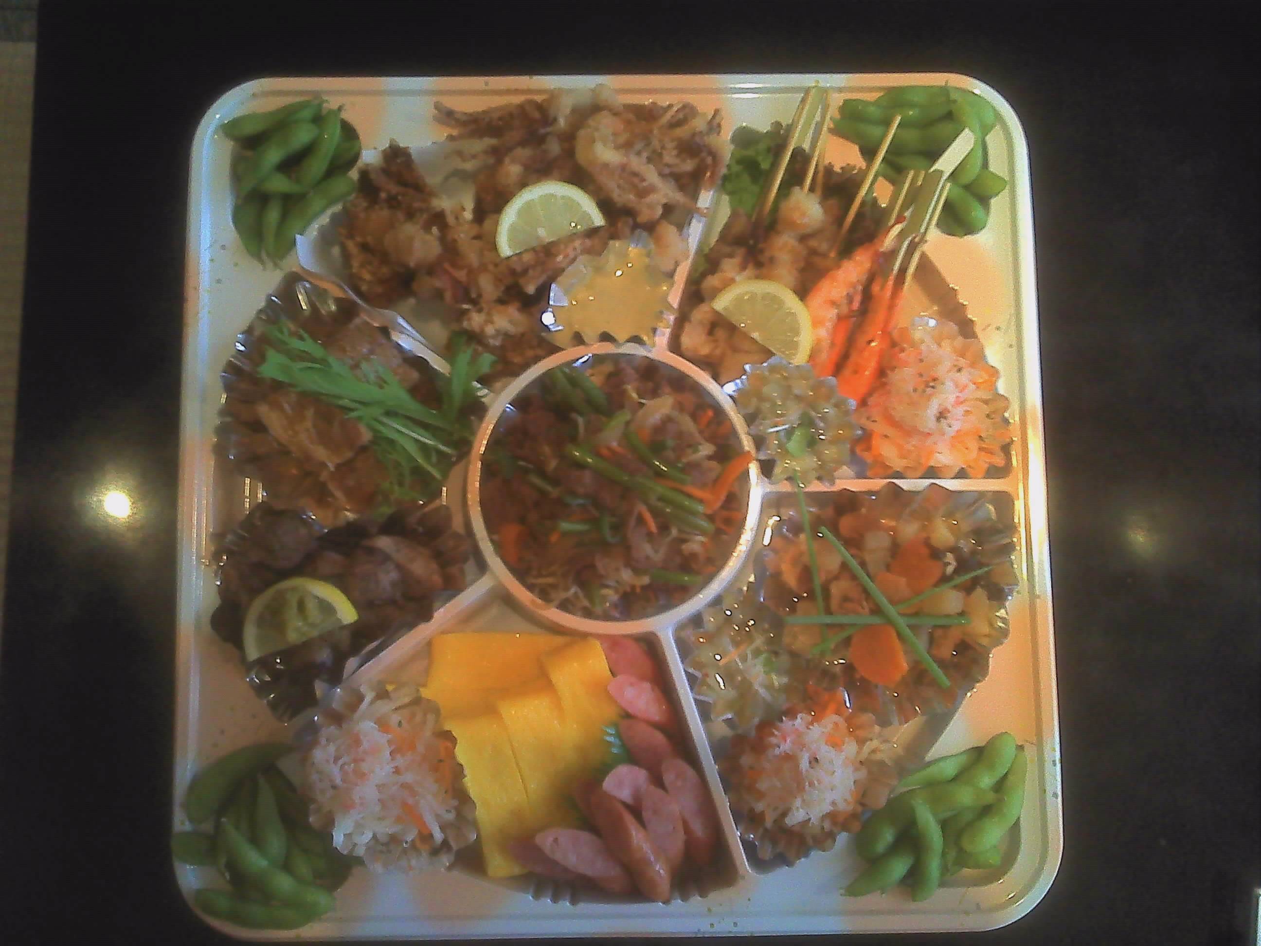 オードブル料理 2012年8月11日 皆さんこんにちわ(^o^)/ 若大将では、お客様のご予算に合わせて持ち帰りのオードブル料理もお作り致してます(^^ゞ 前日までに御予約くださいませm(__)m 写真は5000円のオードブルです