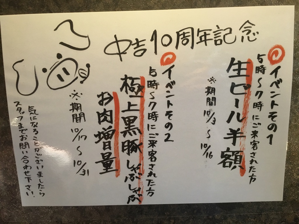 さて、10月で姉妹店の居食屋 中吉が10周年を迎えます(^^)