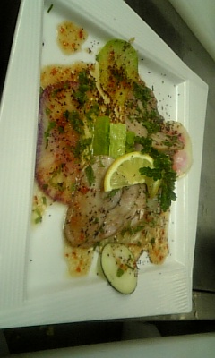 こちらは、マグロのハムと大根のカルパッチョです。700円です。