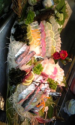 活魚盛り 2010年2月6日 昨日は活魚盛(写真左)内容はヒラメと鯖と鯵や国分大根カツ(写真右)などの料理で、見てビックリ!食べてビックリ!喜んでいただくお客様もいらっしゃいました。本当にありがとうございます(^o^)