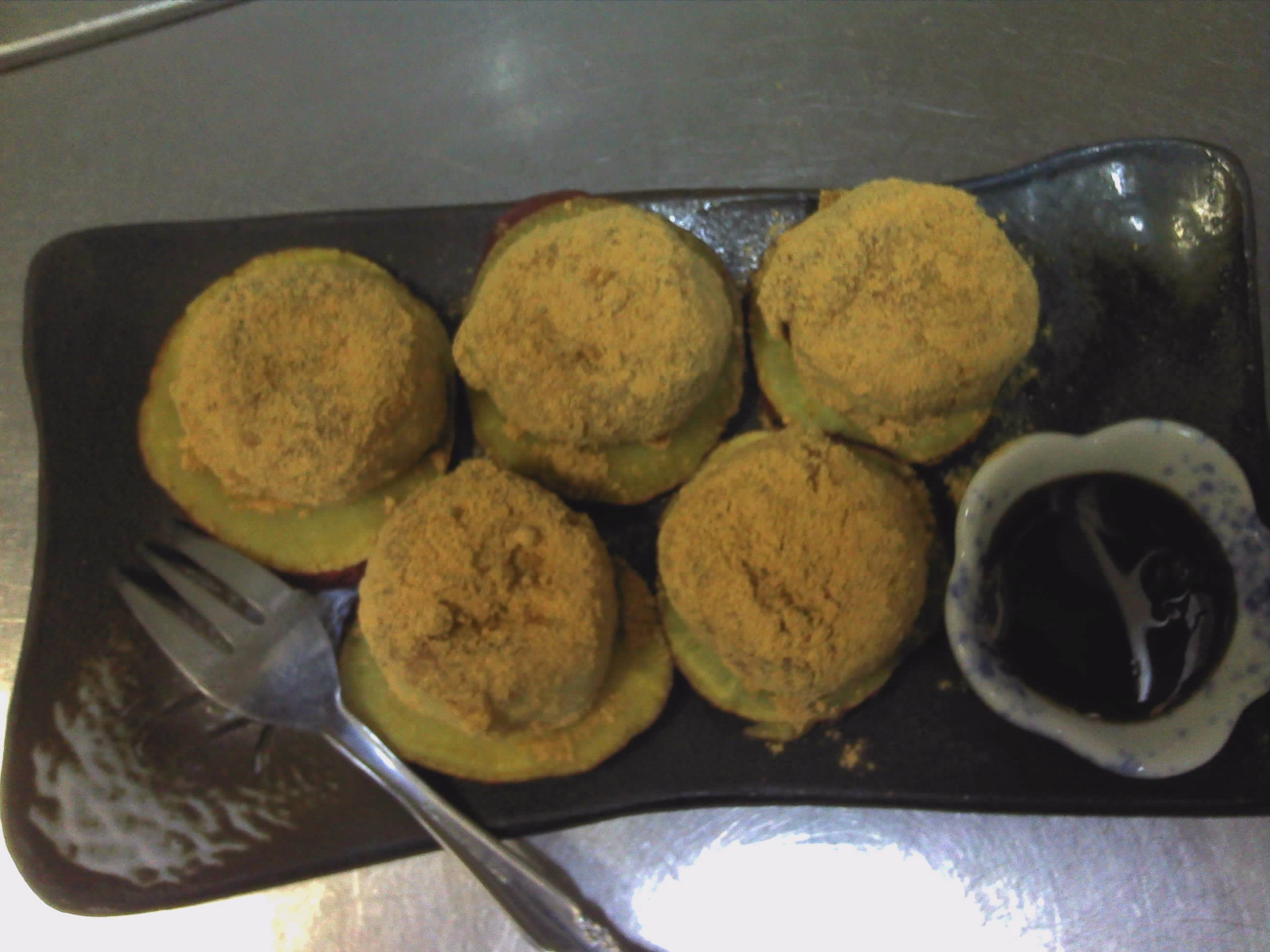 一口ねったぼ 2013年1月27日 今日は手作りデザートの紹介です さつまいもと、もち米でできたおもちにきな粉をまぶしてできた 鹿児島ならではの芋もちです ねったぼを是非食べてみて下さい まずはそのままで食べてみて、 甘さがほしかったら 黒蜜をかけてみて! 手作りデザート 今回は和のスイーツです 最近、こういうの食べてない方も多いのでは・・・